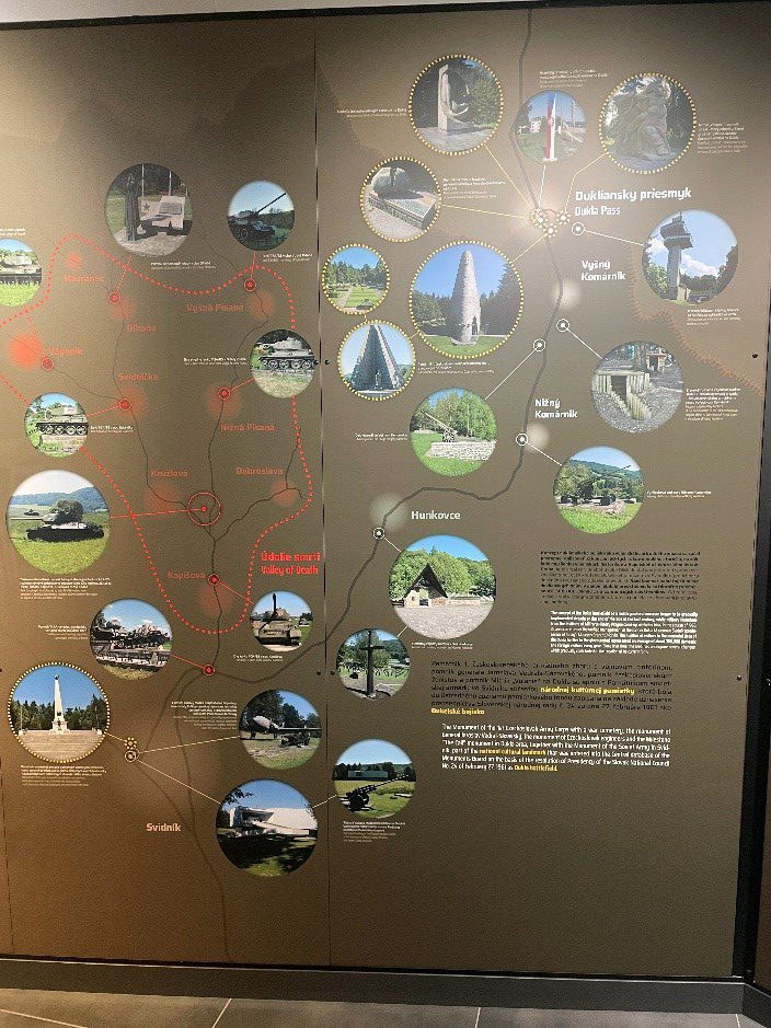 Práve preto obhliadka týchto miest vytvára silnú atmosféru a pripomína vojnovú históriu, ktorá sa už nesmie opakovať. Objavili sme nádherné skvosty, architektúru a prekrásnu pokojnú prírodu. Prvým našim zastaveným bol Pamätník Československej armády na Dukle – národná kultúrna pamiatka. Je pripomenutím Karpatsko-duklianskej vojenskej operácie, ktorá sa uskutočnila na jeseň 1944. Okolie pamätníka s cintorínom je rozľahlým vojenským múzeom pod šírim nebom. Bývalé bojisko možno vidieť z nadhľadu, ktoré nám poskytla vyhliadková veža. V posledných rokoch vyhliadková veža prešla rozsiahlou rekonštrukciou. Klientov zaujala aj pútavá prednáška o vojnovej histórii, ktorá bola samozrejmou súčasťou obhliadky. V lese nad obcou Vyšný Komárnik sme nevynechali ani obhliadku zrekonštruovaných bunkrov (resp. zemľaniek). Zase v okolí obce Kapišová sa nachádza Údolie smrti, kde sa odohrávali najťažšie boje s masívnym nasadením tankov. Počas presunov na jednotlivé miesta sme sa zastavili na chutný obed v motoreste Alpinka. Klienti si pochutnali na miestnych špecialitách a vychladenej kofole. Náš výlet sme zakončili nákupom v meste Stropkov.