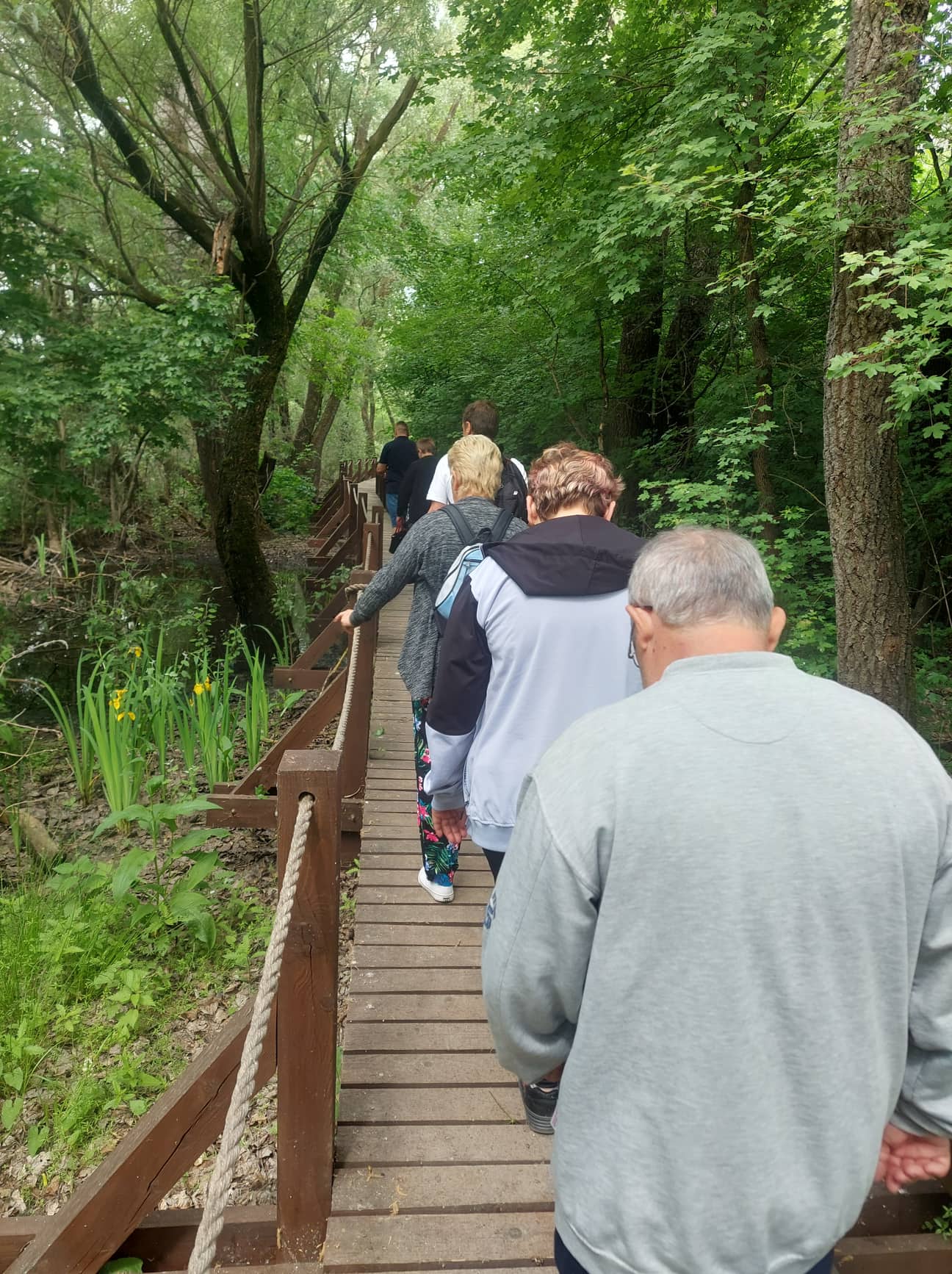 Vybrali sme si teplý deň a v dobrej nálade sme nasadli do áut a vyrazili z nášho zariadenia. Nakoľko samotná zážitková cesta nemala náročné stúpanie výletu sa zúčastnil každý. Už pri vstupe sme cítili výraznú vlhkosť, čo príjemne potešilo v tento horúci deň. Videli sme toho veľa, či už rozsiahle močiare, bohatú faunu, ktorej sa široko-ďaleko nič nevyrovnalo, ale i samotnú vyhliadkovú vežu, ktorú naši prijímatelia využili na zvečnenie spomienok rôznymi spoločnými fotkami. Odvážnejší výletníci dokonca využili čiastočne nestabilný most, ktorý vháňal riadnu dávku adrenalínu. Po doplnení energie malým občerstvením sme vyrazili cestou naspäť, ktorá zbehla rýchlo. Tento deň nám ešte dlho ostane v spomienkach ako ďalší deň, kedy sme celý strávili spolu a v dobrej nálade.